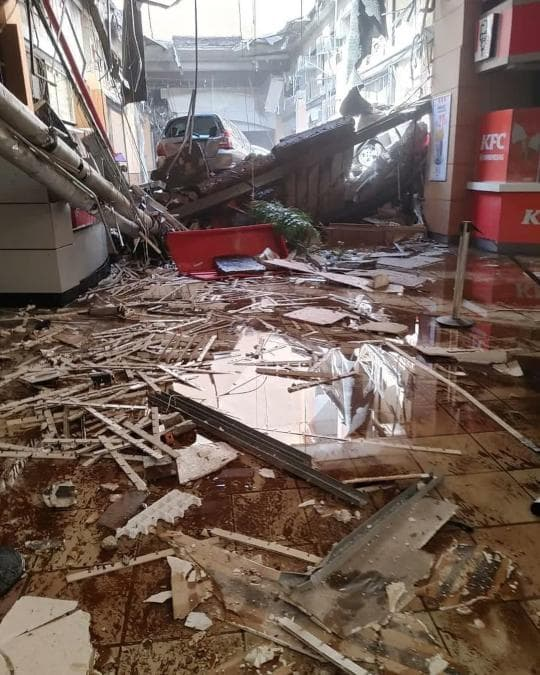 Imágenes compartidas en redes sociales mostraron cómo los clientes observaban a la distancia una parte del techo del edificio que estaba a punto de romperse. Segundos después del hundimiento, gran parte del sector se vio envuelto en una nube de polvo además de verse poblado de escombros.