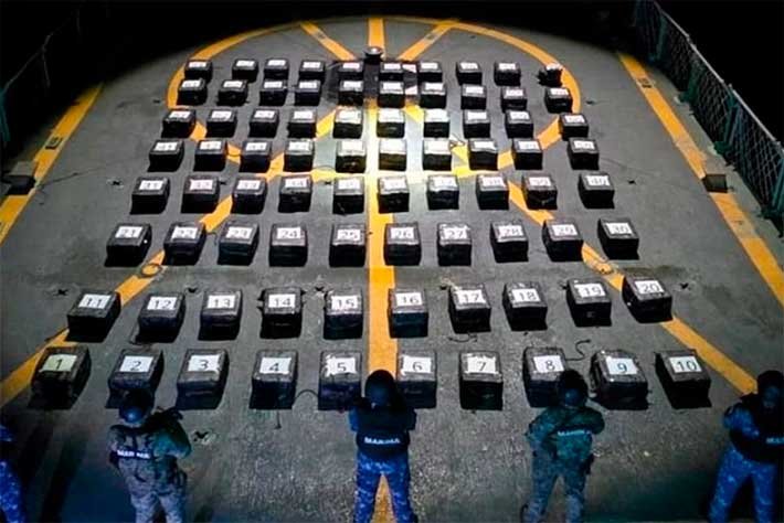 México .- En una operación marítima encabezada por elementos de la Secretaría de Marina (Semar), a través de la Armada de México en funciones de Guardia Costera, en coordinación con la Fiscalía General de la República (FGR) y la Secretaría de Seguridad y Protección Ciudadana (SSPC), se aseguraron 80 bultos con aproximadamente dos toneladas de presunta cocaína, cuyo peso exacto será determinado por las autoridades ministeriales correspondientes.
