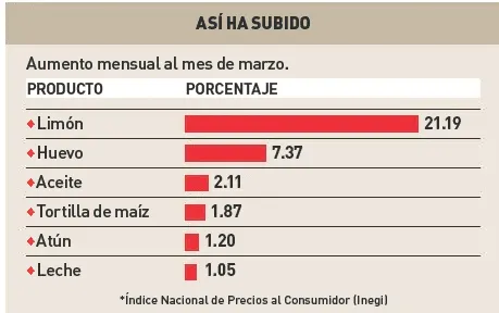 En el caso de Sonora los alimentos que presentaron más incrementos fueron la tortilla de maíz, leche, huevo, aceite y atún en lata con aumentos del 1.05 y hasta el 21.19%.