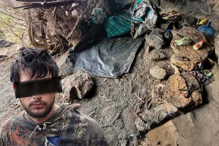 El hombre se encontraba en una especie de cueva, con un garrafon con agua, algunos alimentos, un plástico donde podía acostarse y una cobija; indicios que refuerzan la relación con actividades delictuosas.